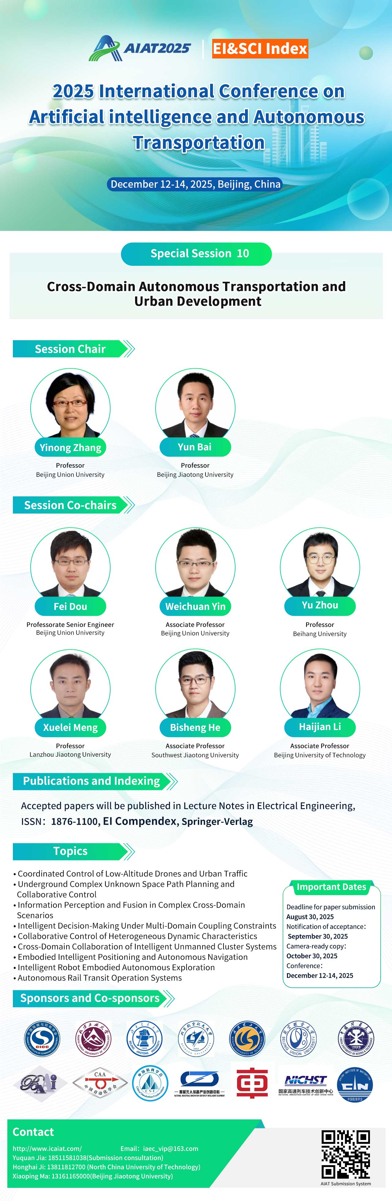 会议录用的全部英文论文由Springer-Verlag旗下的Lecture Notes in Electrical Engineering (LNEE,ISSN:1876-1100,EI-Compendex,LNEE已进入EI目录多年,EI检索稳定, AIAT往届会议论文集在出版后约1个月全被EI检索)出版。另外,优秀论文将有机会被推荐至下面SCI期刊发表。